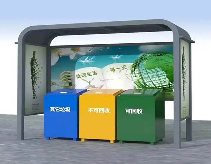 10、宣傳牌:側面設置垃圾分類宣傳牌,它可以起到宣傳教育、引導、美化環境和公益推廣的作用,有助于提高人們的環保意識和參與度,促進垃圾分類的規范化、標準化和普及化。