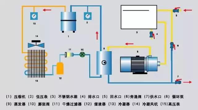 1.防止和減少工業冷水機的管道結垢,以提高冷凝器和蒸發器的換熱效率。補充水如果水處理做的不好,碳酸氫鈣和碳酸氫鎂受熱產生的碳酸鈣和碳酸鎂會沉積在管道上。使導熱性能下降,影響冷凝器和蒸發器的換熱效率,并使冷水機運行的電費大幅度上升。此時除了采用水處理技術外,還可以利用管道定期自動清洗設備進行管道清洗,節省電量的同時可提升冷水機制冷效果。