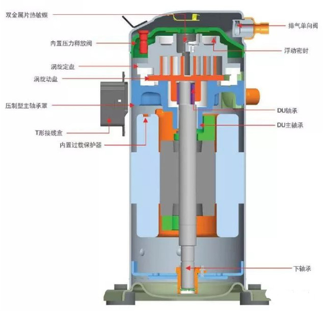 下機殼內電動機的發熱量和冷凍油帶出的摩擦熱量,主要由蒸氣帶出機殼。