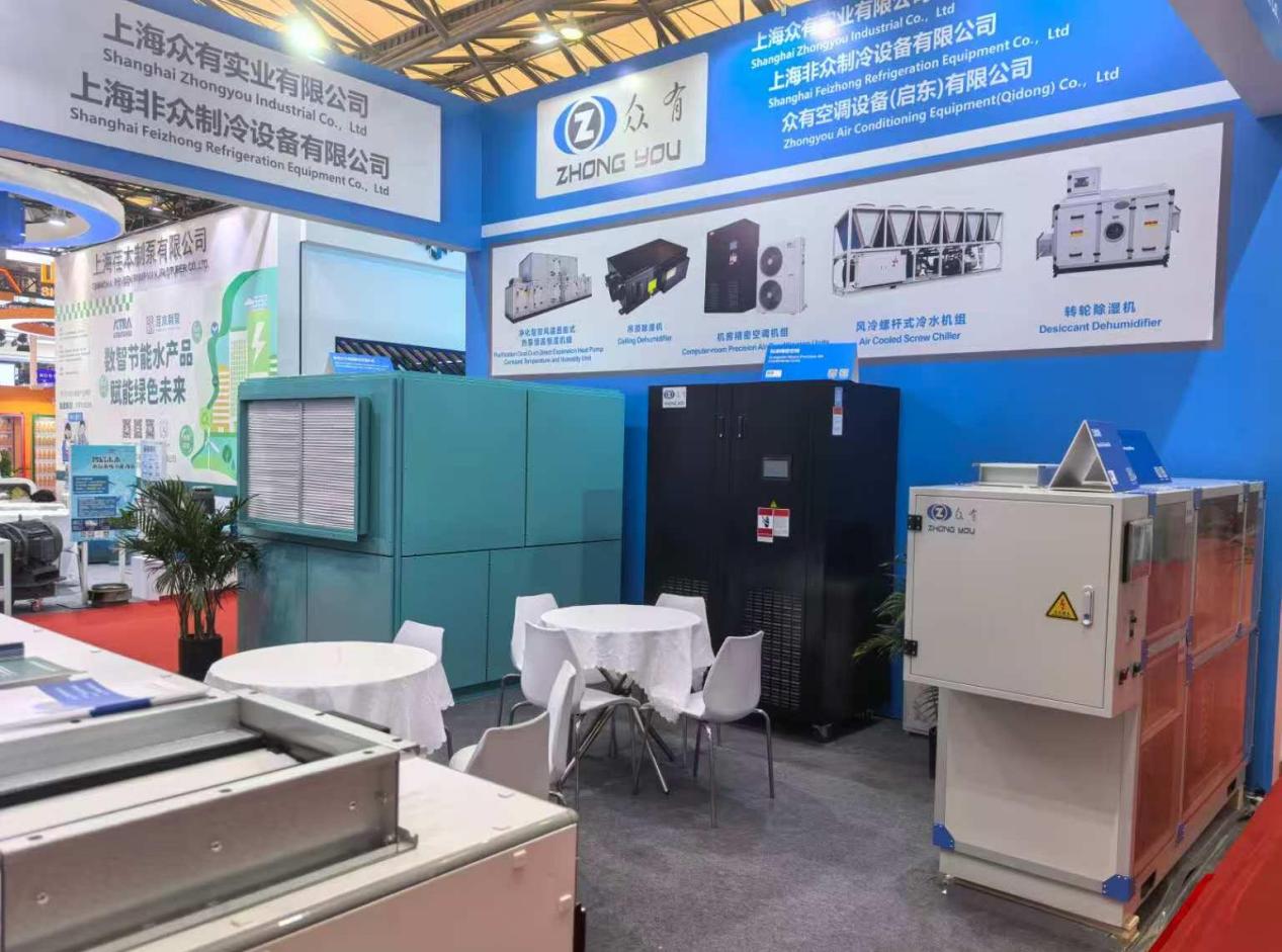 本次展覽中,眾有實業(yè)展示了多款創(chuàng)新產(chǎn)品,參展的產(chǎn)品線豐富多樣,涵蓋了工業(yè)除濕機(jī)、機(jī)房精密空調(diào)機(jī)組、船用水冷調(diào)溫型除濕空調(diào)機(jī)組、凈化型直膨式變頻恒溫恒濕機(jī)組以及恒濕機(jī)(除濕加濕一體機(jī))等多種設(shè)備。這些產(chǎn)品不僅在設(shè)計上體現(xiàn)了現(xiàn)代工業(yè)美學(xué),更在性能上實現(xiàn)了高效節(jié)能和低碳環(huán)保的結(jié)合,充分展現(xiàn)了公司在制冷領(lǐng)域的強(qiáng)大研發(fā)實力和創(chuàng)新能力。