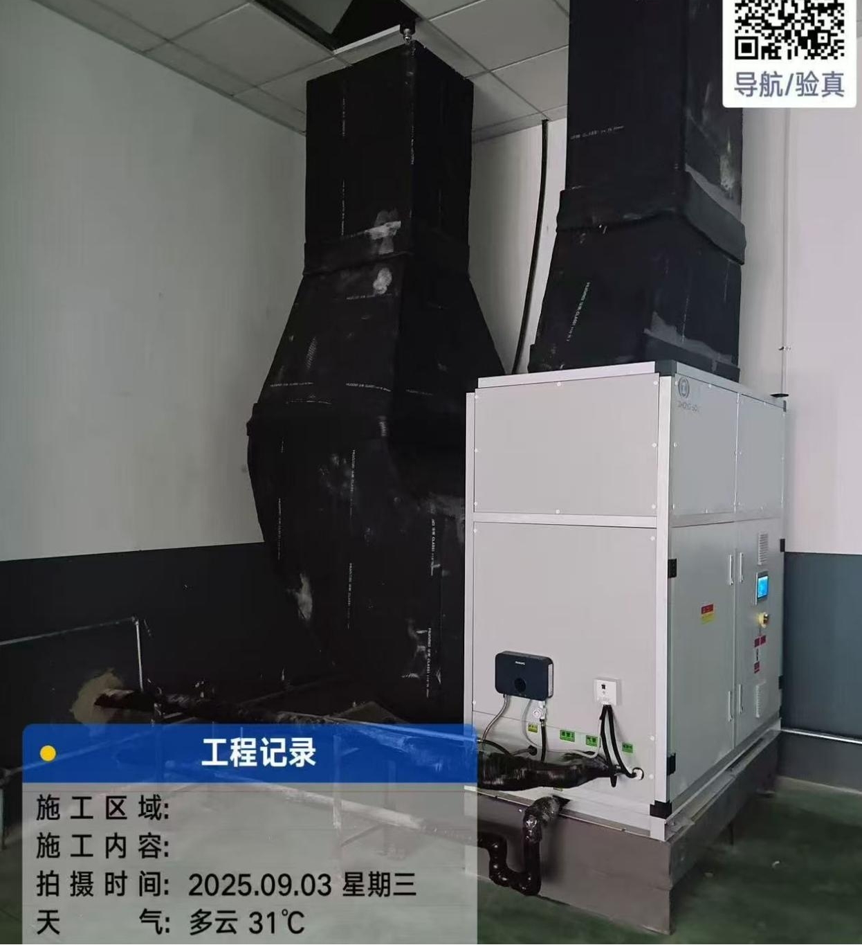 該項目對廠房溫濕度有較高的要求,房間內(nèi)有風(fēng)機盤管降溫,溫度20℃, 精度±2.0℃,濕度65%, 精度±2% 。為滿足這一需求,我司為廠房設(shè)置了一套變頻恒溫恒濕機組系統(tǒng),并選用了變頻風(fēng)冷恒溫恒濕機組HF45WBP作為主備設(shè)備。