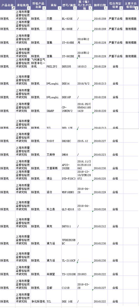 除濕機抽查名單合格與不合格產(chǎn)品名單