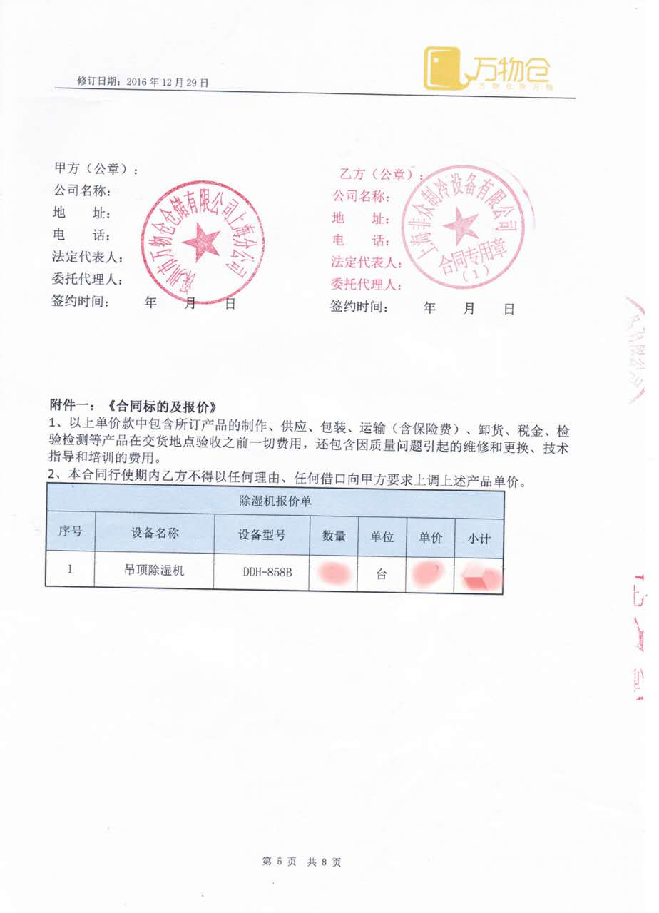 萬物倉公司的工作人員了解到我司的除濕設備來電咨詢,并提出了對于環境溫濕度的技術要求,我方銷售經過專業評估進行選型后,為客戶推薦了DDH-858B吊頂除濕機來用于倉儲車間,為以后的再度合作達成堅韌的基礎。感謝萬物倉公司對眾有人的信任、眾有產品質量的認可,更期待我們的愉快合作!